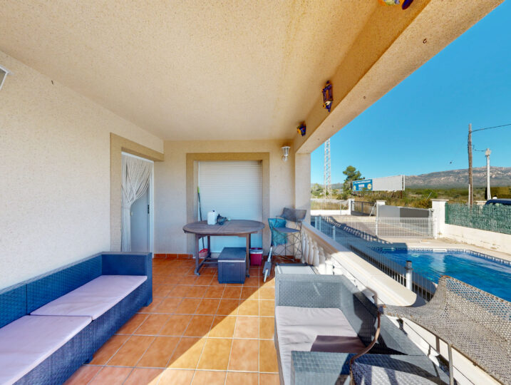 En el exterior, la vivienda ofrece un gran jardín con zonas verdes, una piscina privada rodeada de espacio para relajarse y tomar el sol, y amplias terrazas que invitan a disfrutar del buen clima todo el año.